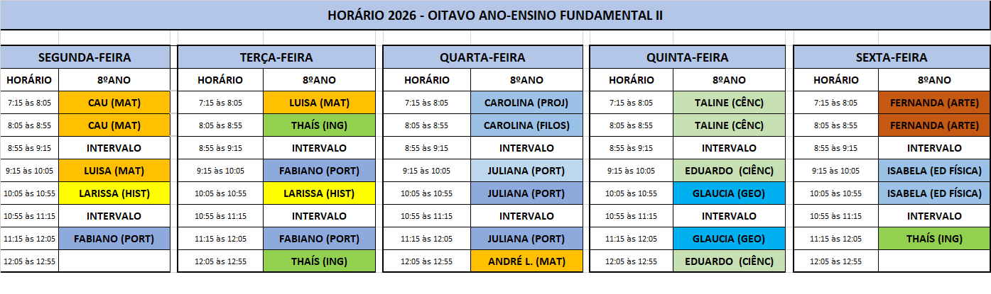 Calendários do Ensino Fundamental 2
